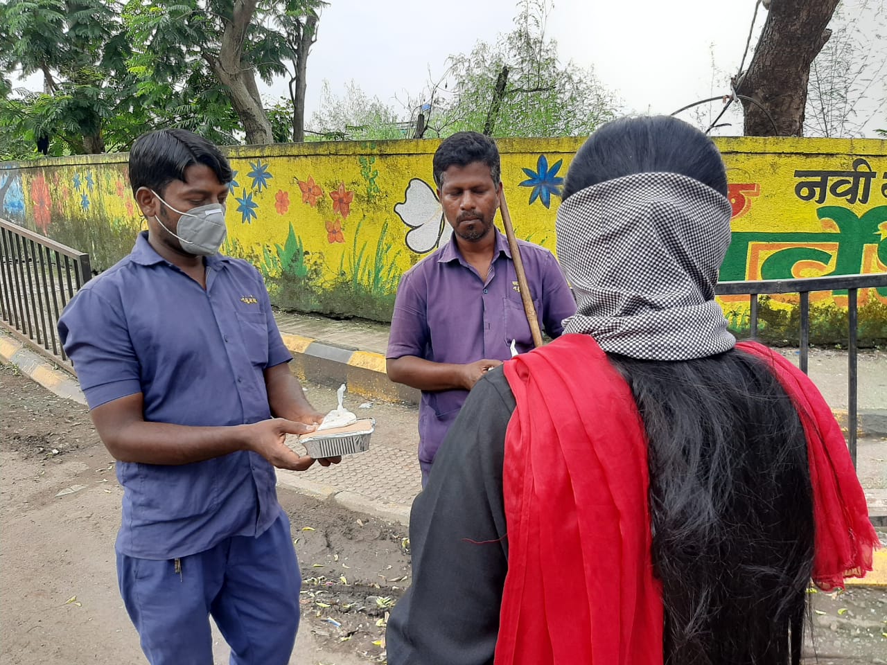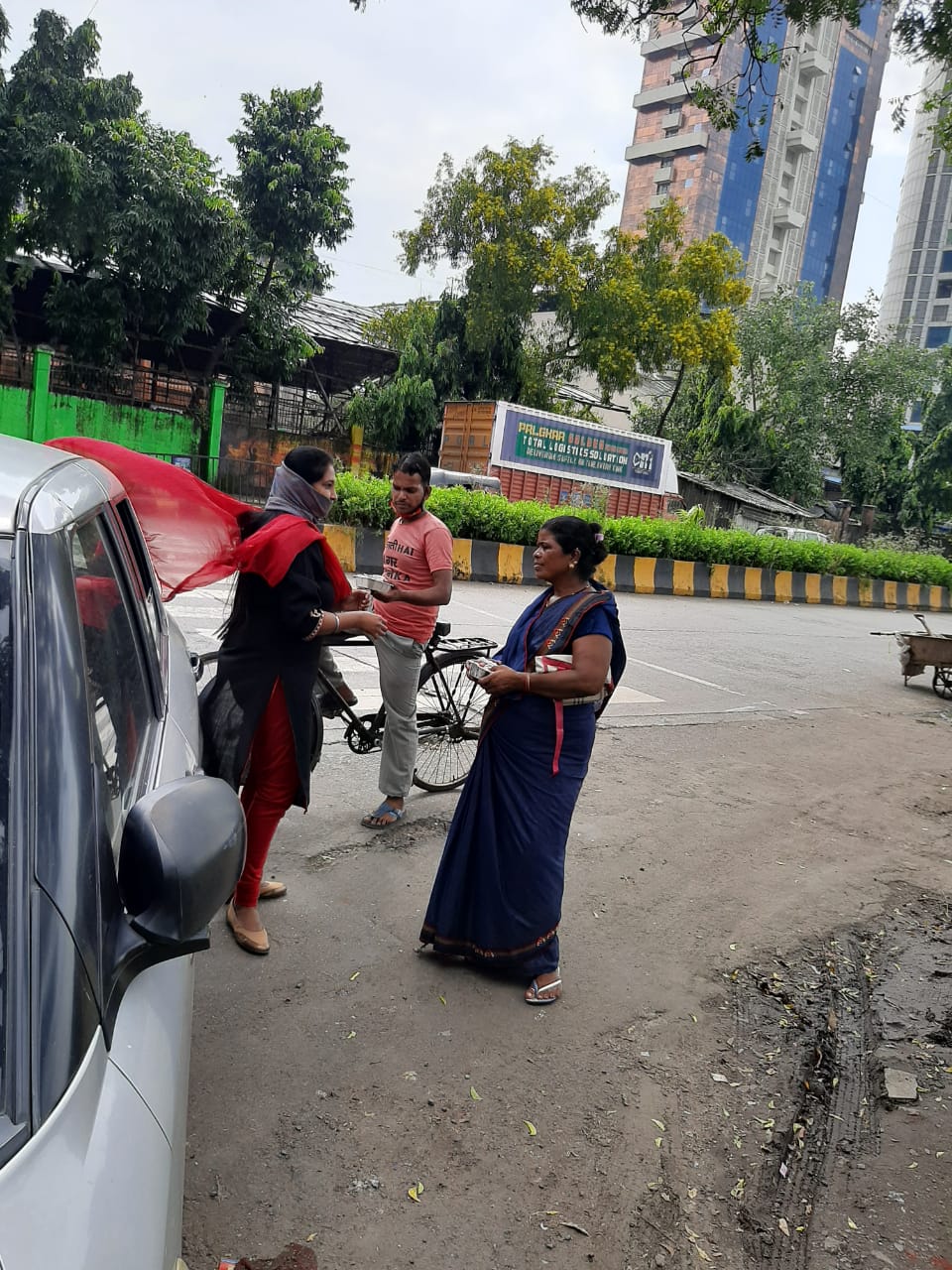 Distributing food to workers and underprivileged during Covid time